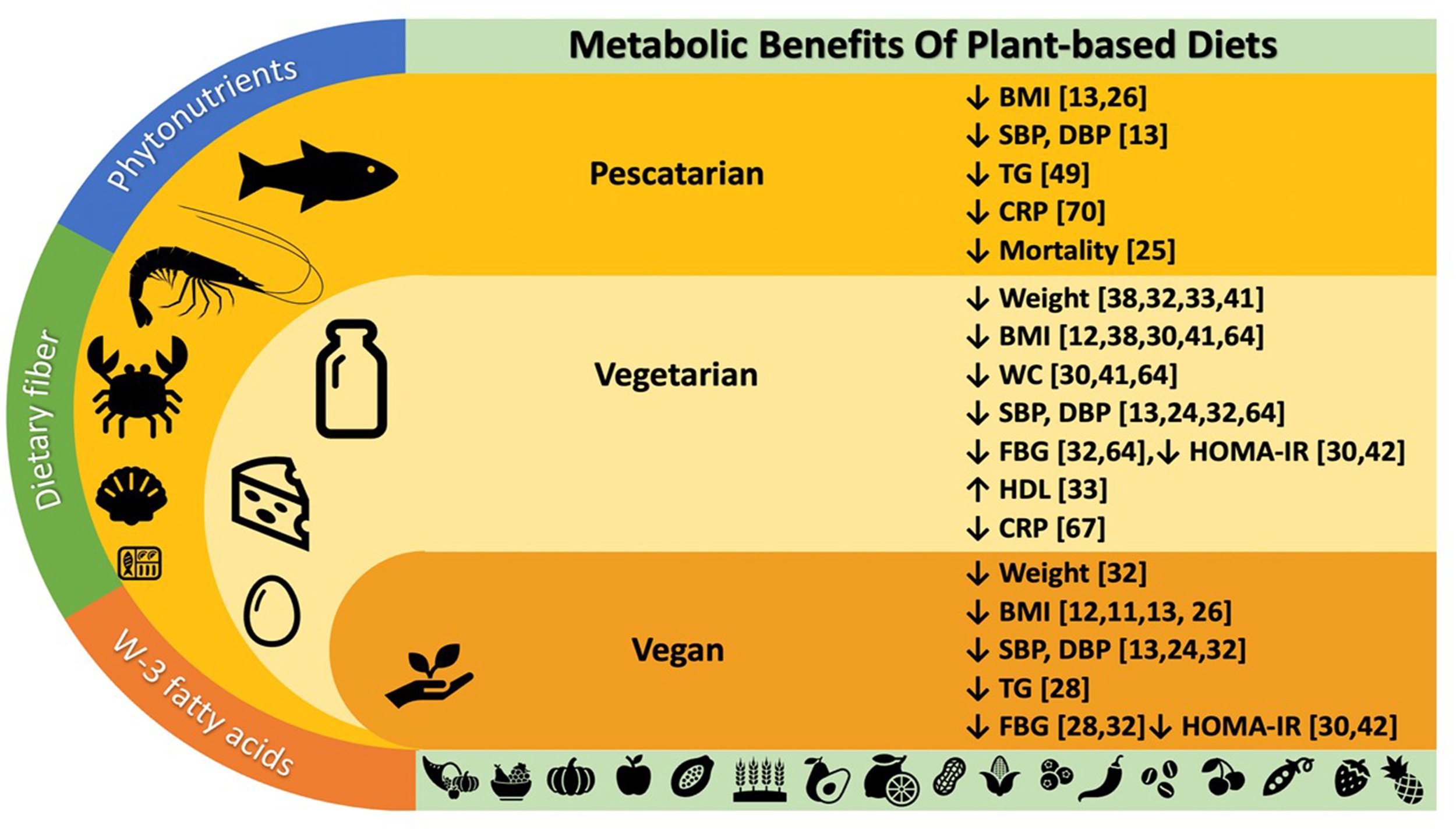 Studies of vegetarian populations, like Seventh-day Adventists, show that people following plant-based diets have lower cholesterol, blood sugar, waist size, and body weight—key factors for preventing heart disease and diabetes.
